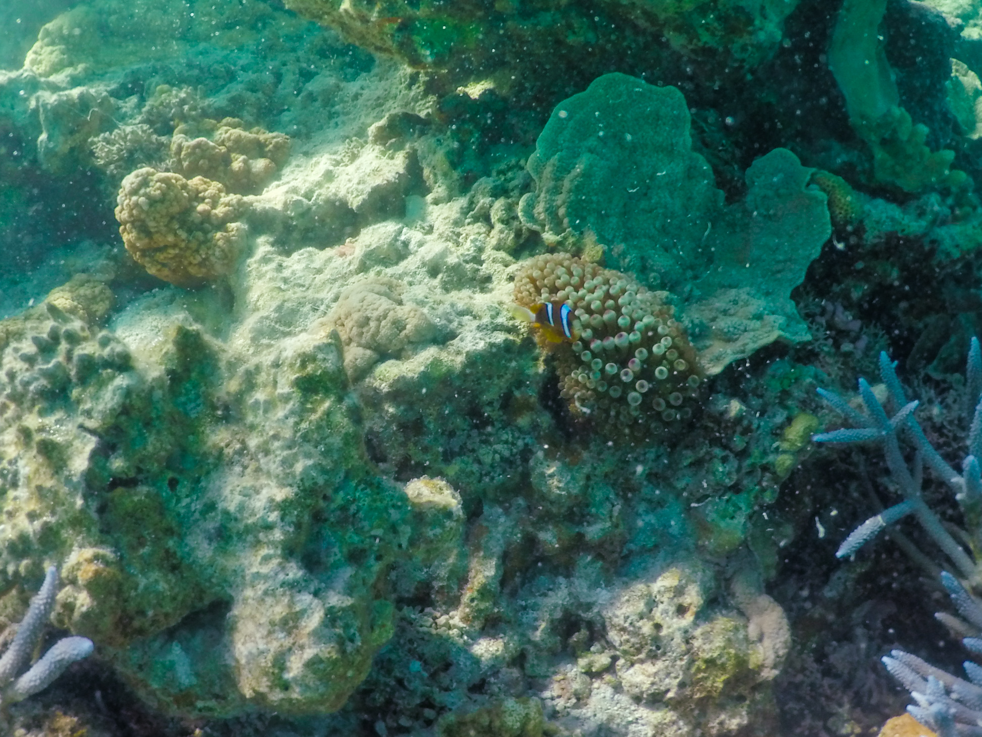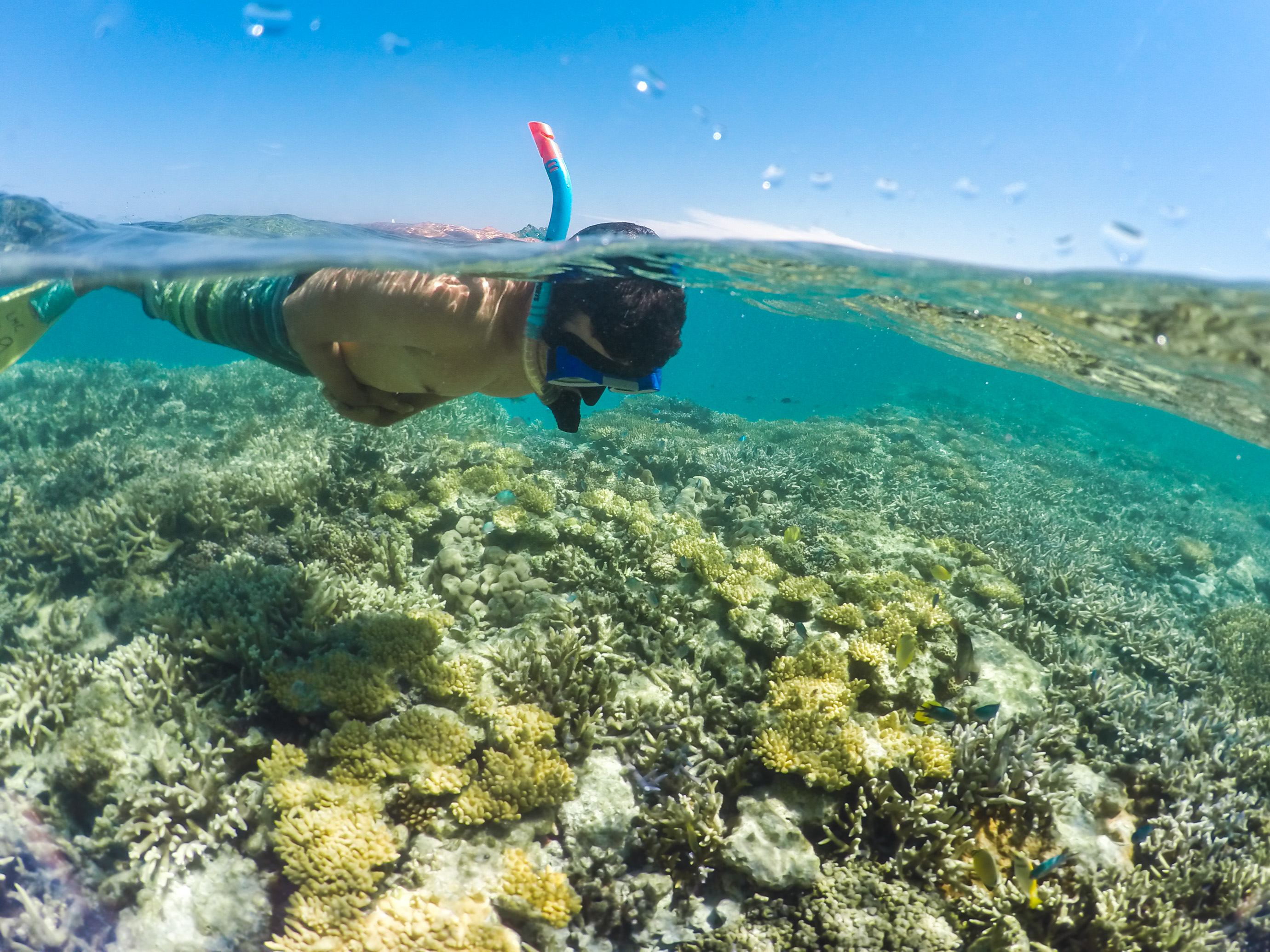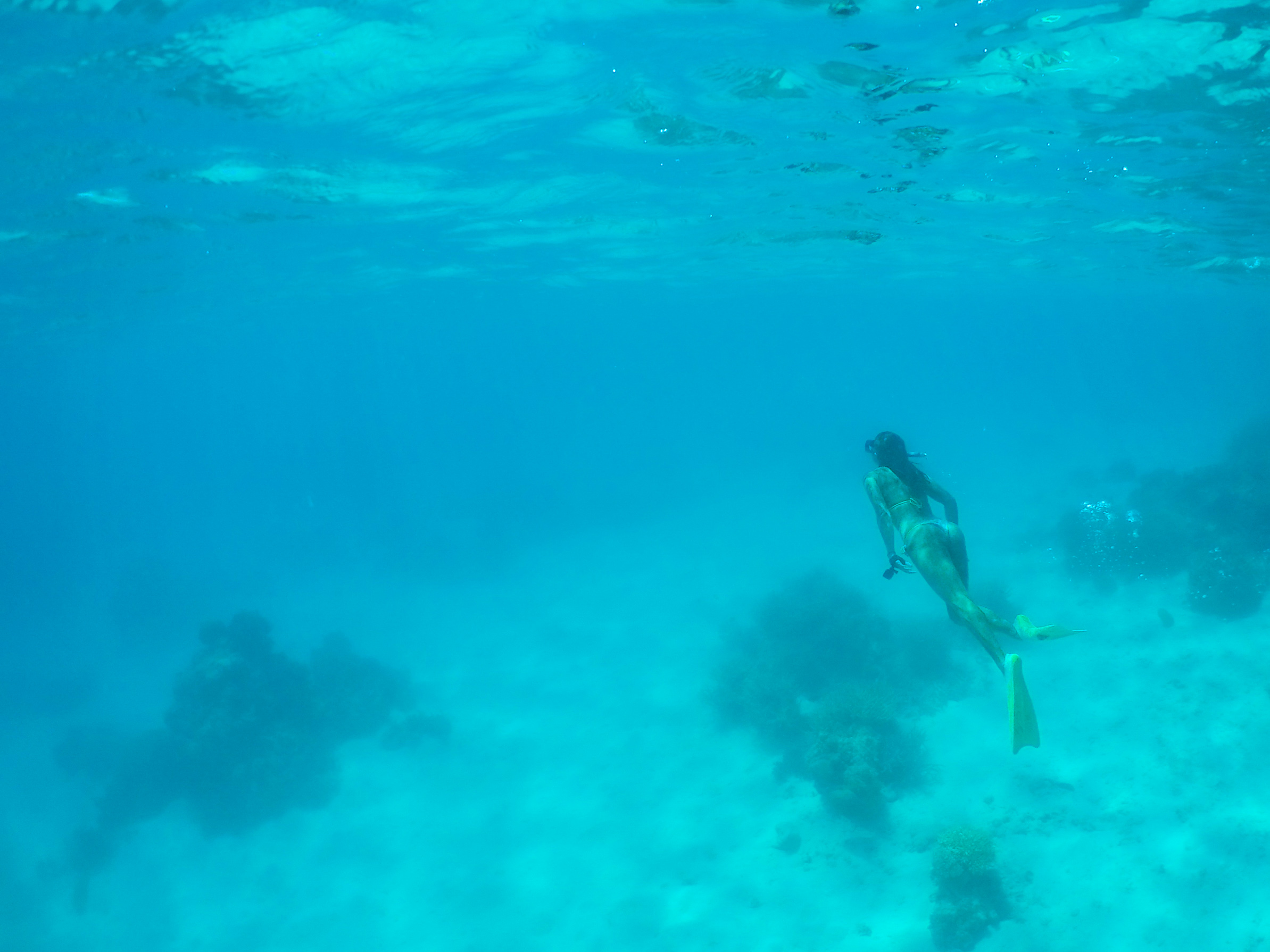 A gente acabou ficando com preguicinha de fazer o tour porque o mar estava lindo demais pra ser “abandonado”. Passamos o tempo todo fazendo Snorkel e observando os peixinhos, as cores variadas e super intensas dos corais – que ficavam bem próximos à superfície, a profundidade máxima ali era de 6m. Eu ainda tive a sorte de nadar do ladinho de uma tartaruga linda!!