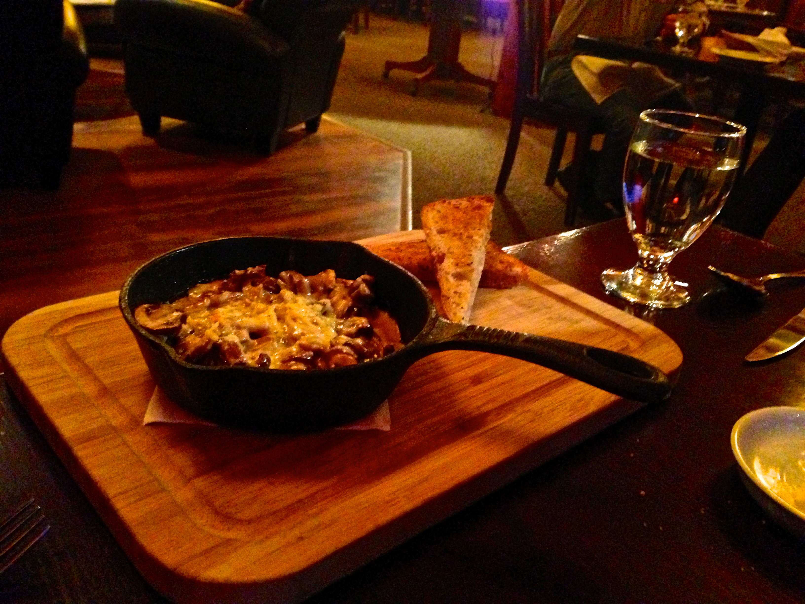 Essas delícias da foto foram o nosso jantar no dia da chegada. Pedimos como entrada uma panelinha de cogumelos (maravilhosa!!) e um delicioso peixe como prato principal. Claro que não podia faltar o vinhozinho para acompanhar aquela noite fria e gostosa em meio às montanhas canadenses.