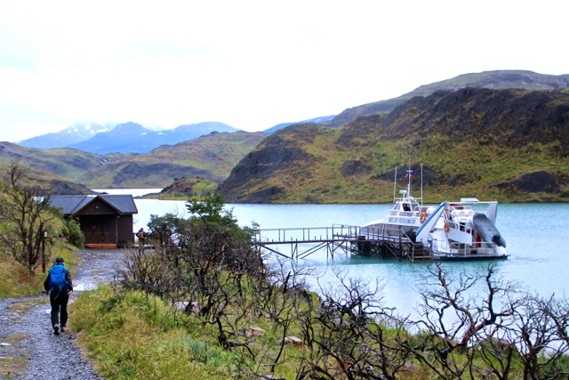 Começamos saindo do Ecocamp com a van, que nos levou até o Lago Pehoé para uma travessia de barco (empresa Hielos Patagonicos) até o alojamento e área de camping Paine Grande (uma ótima opção de hospedagem para a primeira ou última noite dos mochileiros que fazem o Circuito W; lá existem ótimos banheiros, refeitório e ainda há uma vista linda do lago).
