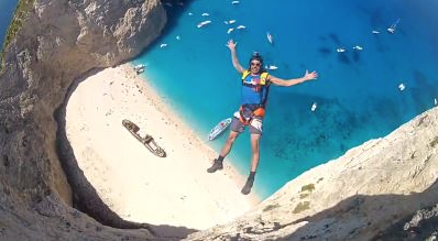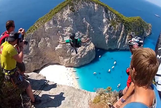 A Navagio também é muito procurada pelos praticantes de base jump*.